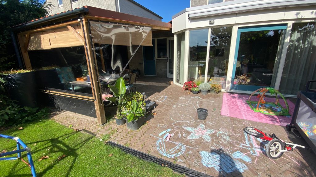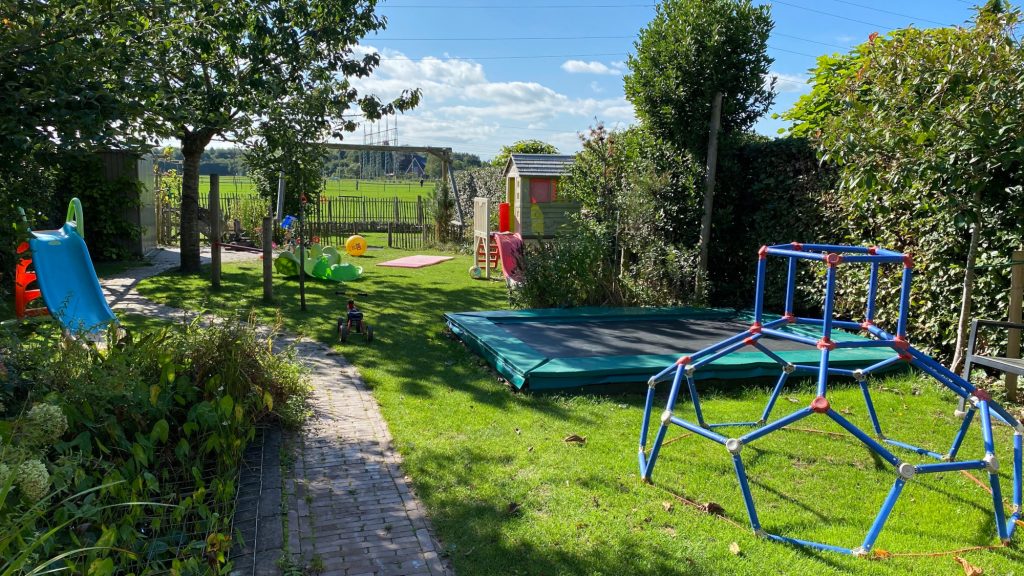 We gaan er veel op uit: in principe beginnen we de dag met een heerlijke wandeling van ruim een uur door het Zandhove bos. Daar voeren we de geitjes en spelen we in de speeltuin. Ondertussen zingen we liedjes over wat we tegenkomen en leren we over de natuur, de seizoenen en alles wat we om ons heen zien. Zo beleven we elke dag weer nieuwe avonturen. De rest van de dag spelen de kinderen vaak en veel buiten in onze tuin. Met een achtertuin van bijna 30 meter lang is hier alle ruimte voor. In de zonnige tuin zijn ook genoeg schaduwplekjes gecreëerd. Er zijn fruitbomen met in de lente prachtige bloesems. We hebben water met beestjes (libellen en kikkers), een zandbak, trampoline, schommels, duikelrek en buitenspeelgoed als fietsjes, steppen en meer. Ook hebben we een moestuin met groenten en bloemen.